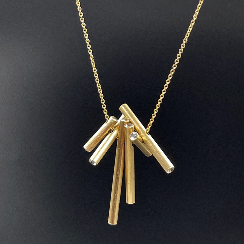 Necklace can be customized with different number and length pendants, as well as different gemstones in each pendant (photo with black background shows custom project using this design). Email for custom inquiries.